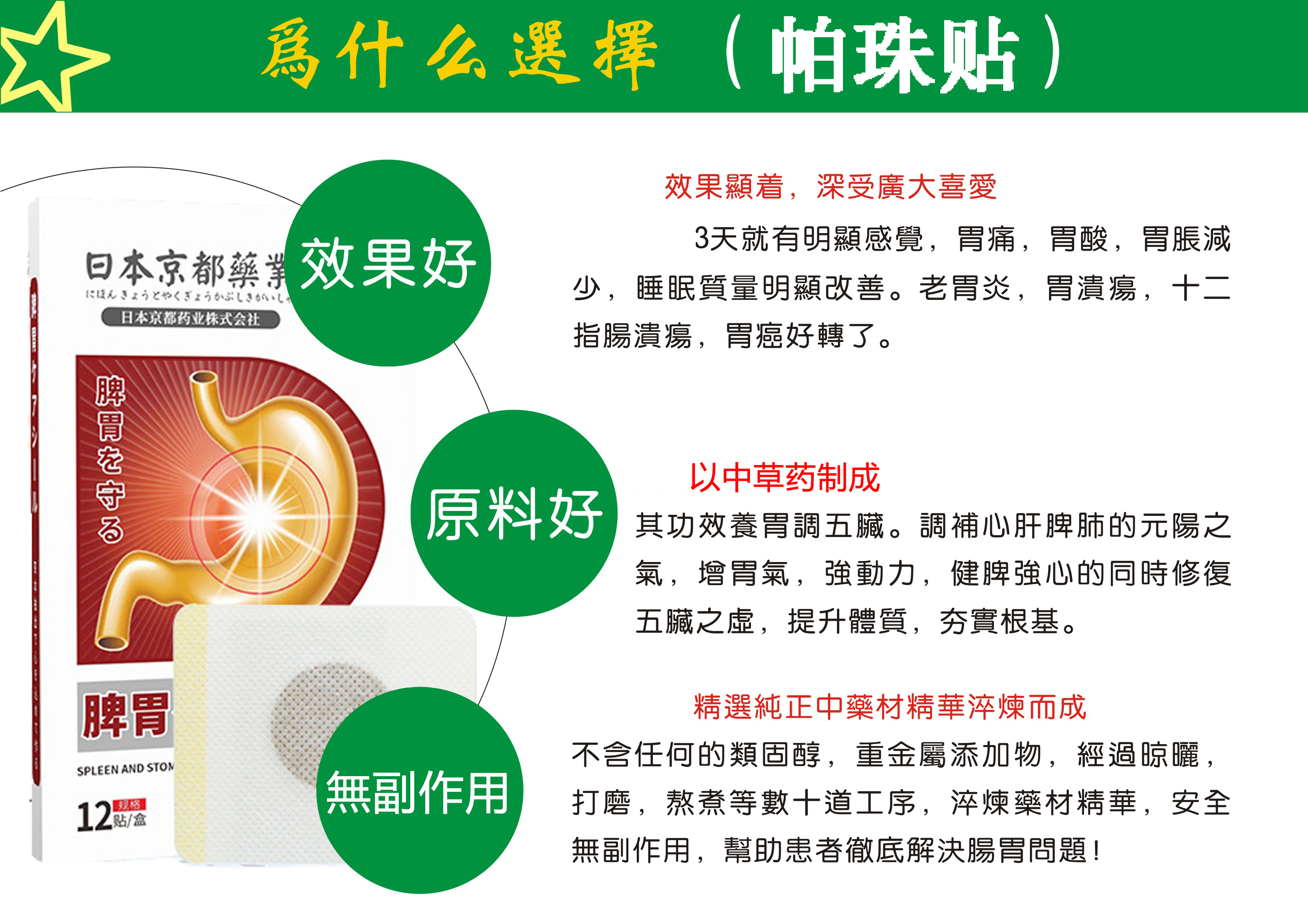 ……用上它——胃病剋星『脾胃貼』,補腎氣,健脾祛濕,疏肝理氣,消食導積,逐步改善胃脹,打嗝,睡眠質量下降等情況,同時快速提升脾胃機能,五臟俱調,固本培元,提高脾胃自身免疫力和抵抗力。恢復脾胃功能,強身健體,預防復發!